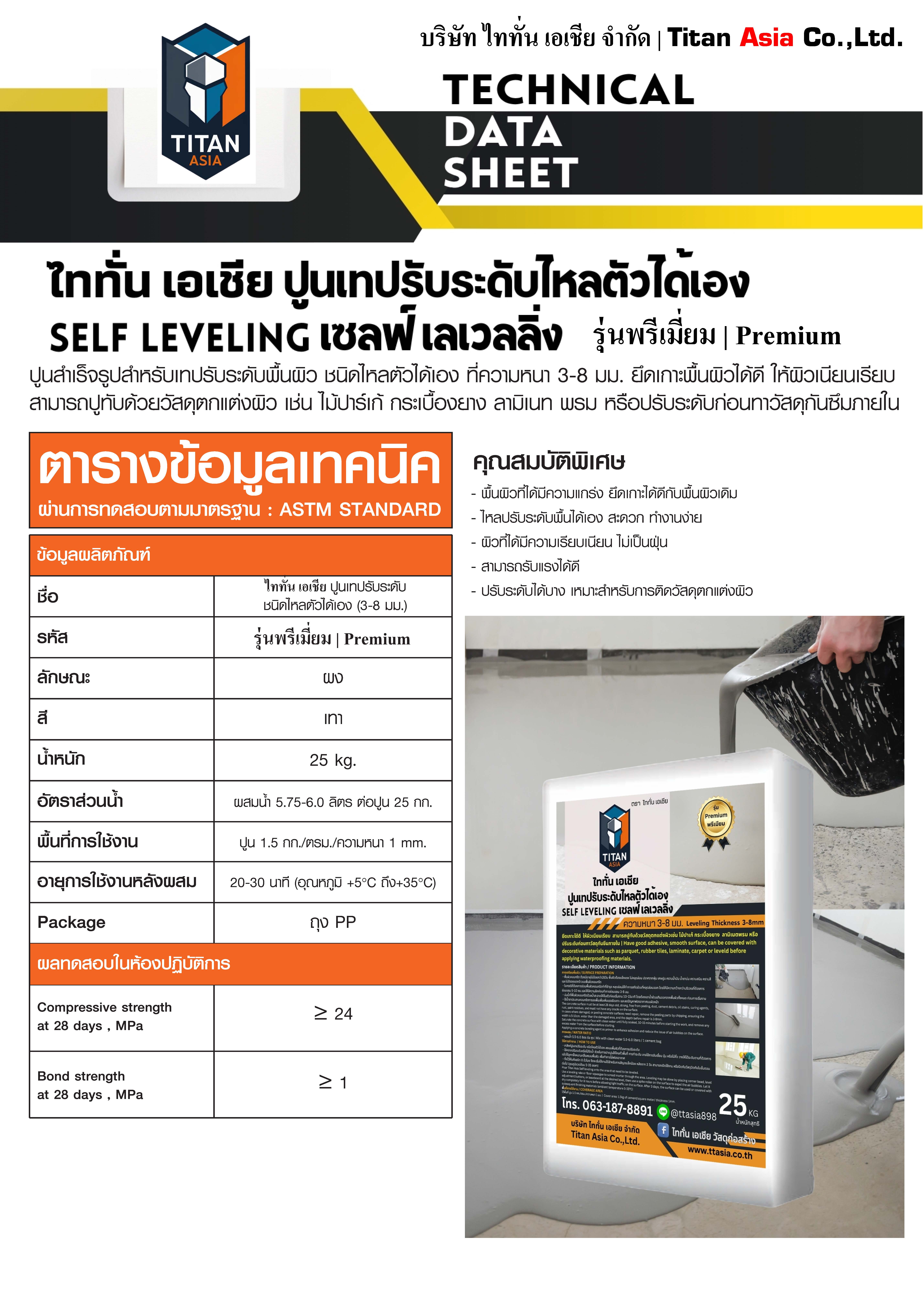 ปูนเทปรับระดับไหลตัวได้เอง รุ่นพรีเมี่ยม ไททั่น เอเชีย เซลฟ์ เลเวลลิ่ง Self Leveling